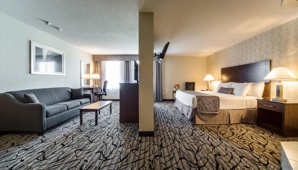 This suite's special feature is the hot tub. The air-conditioned suite features 1 bedroom and 1 bathroom with a bath and a shower. The suite has carpeted floors, a seating area with a flat-screen TV, a tea and coffee maker, a wardrobe, as well as a safe deposit box. The unit offers 1 bed.